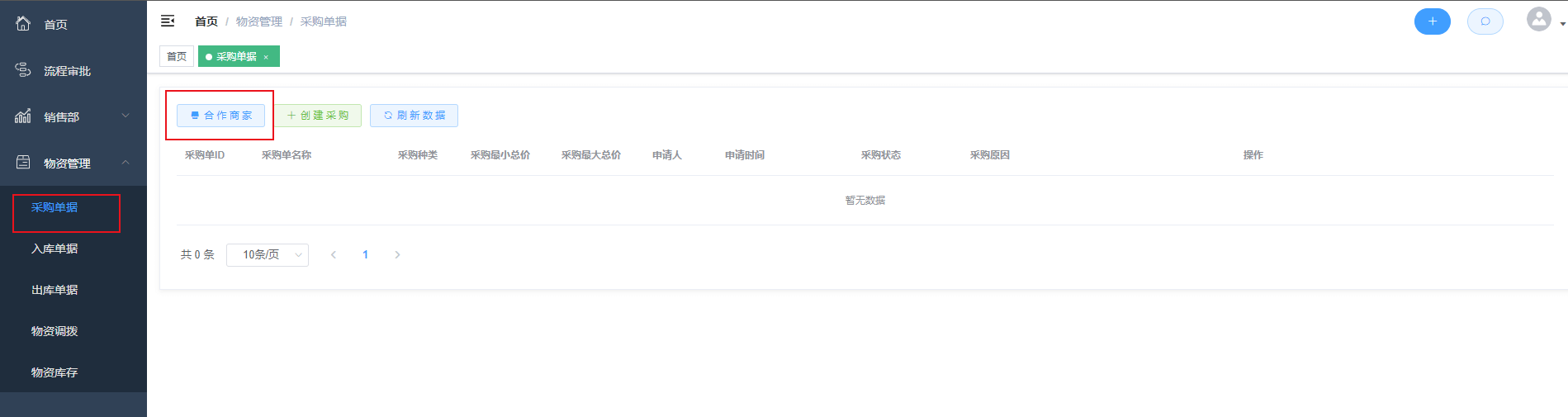 第一步:点击采购单据-->点击合作商家按钮