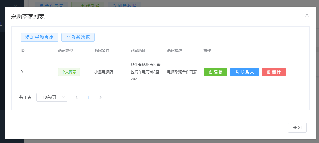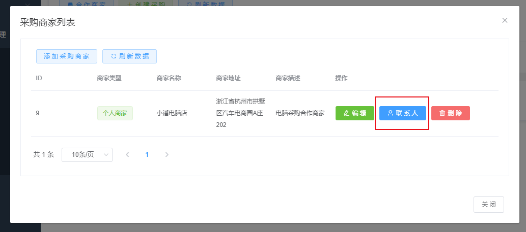 第二步:点击添加采购商家按钮