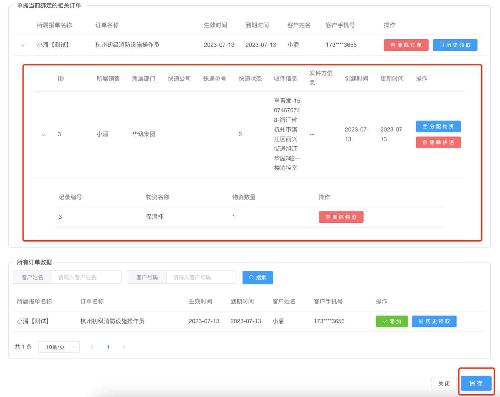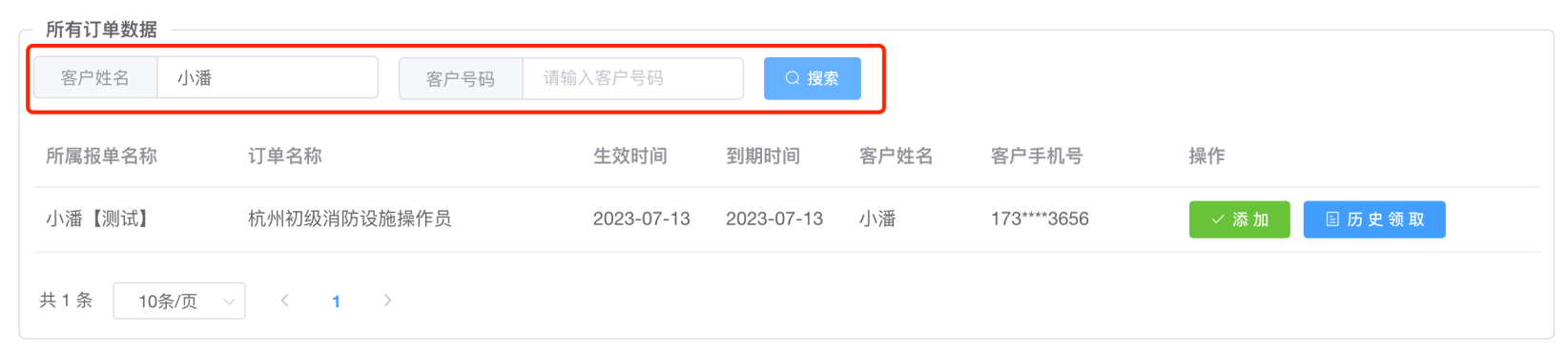 第五步:搜索客户订单并点击添加按钮(该客户必须要有订单)