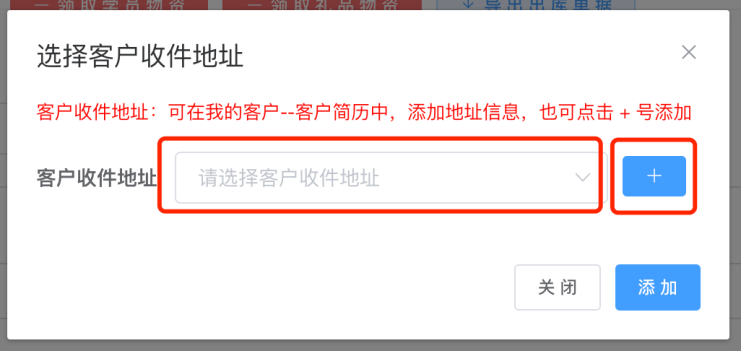第七步:选择或新增创建该客户的收货地址,确认无误后点击添加按钮