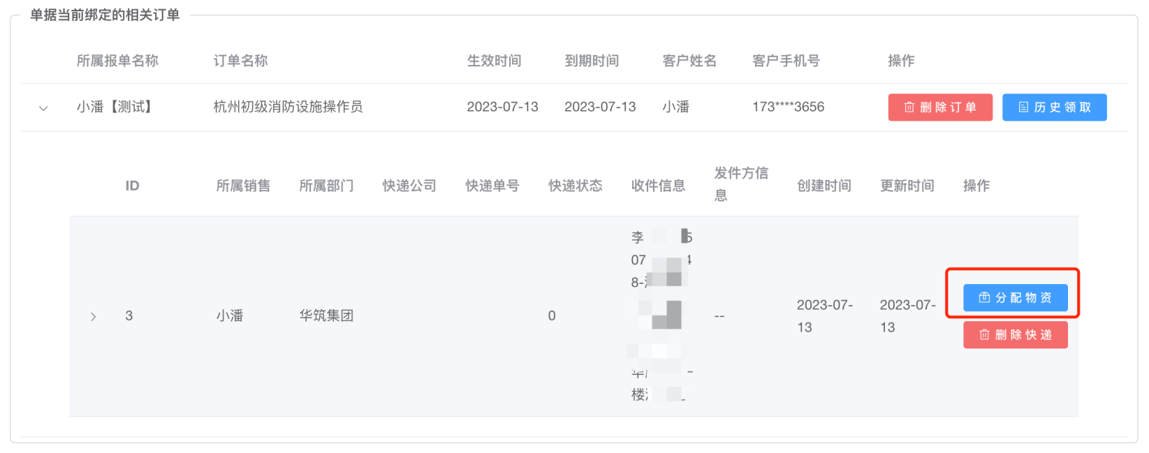 第八步:创建完快递单后,点击快递单上的分配物资按钮