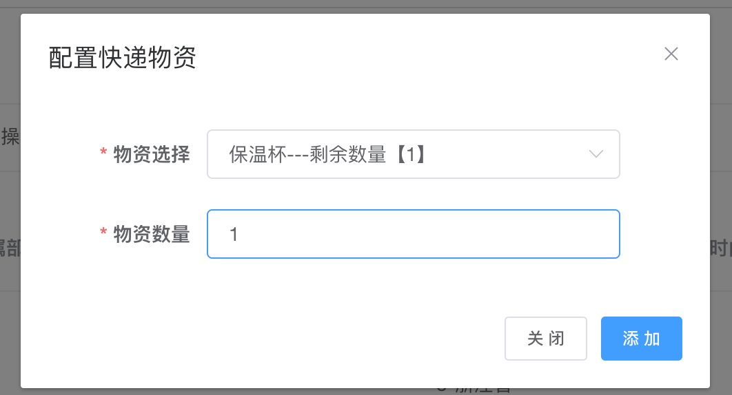 第九步:选择物资并进行数量分配(针对出库单中需要快递发给多人的情况,则按实际数量分配每个人快递单的物资情况)