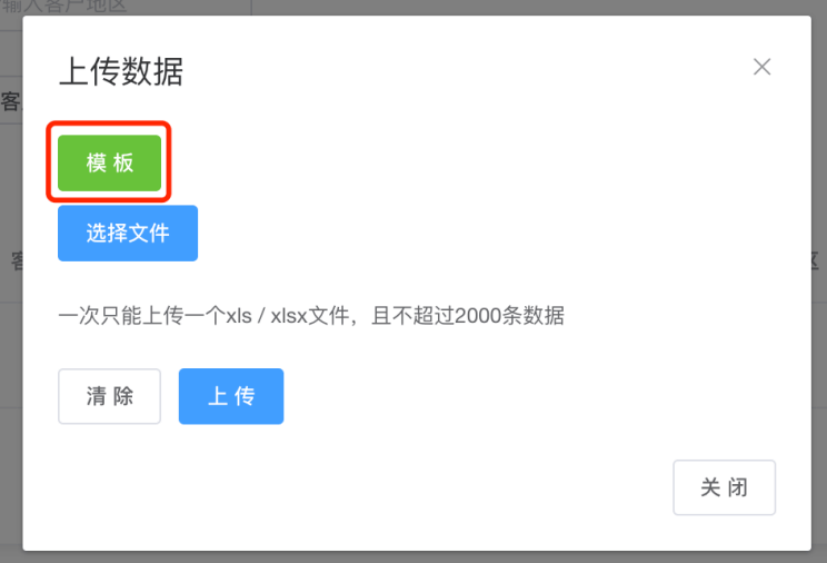 第二步:点击模版按钮,点击下载模板、下载标签数据到本地,且打开文件