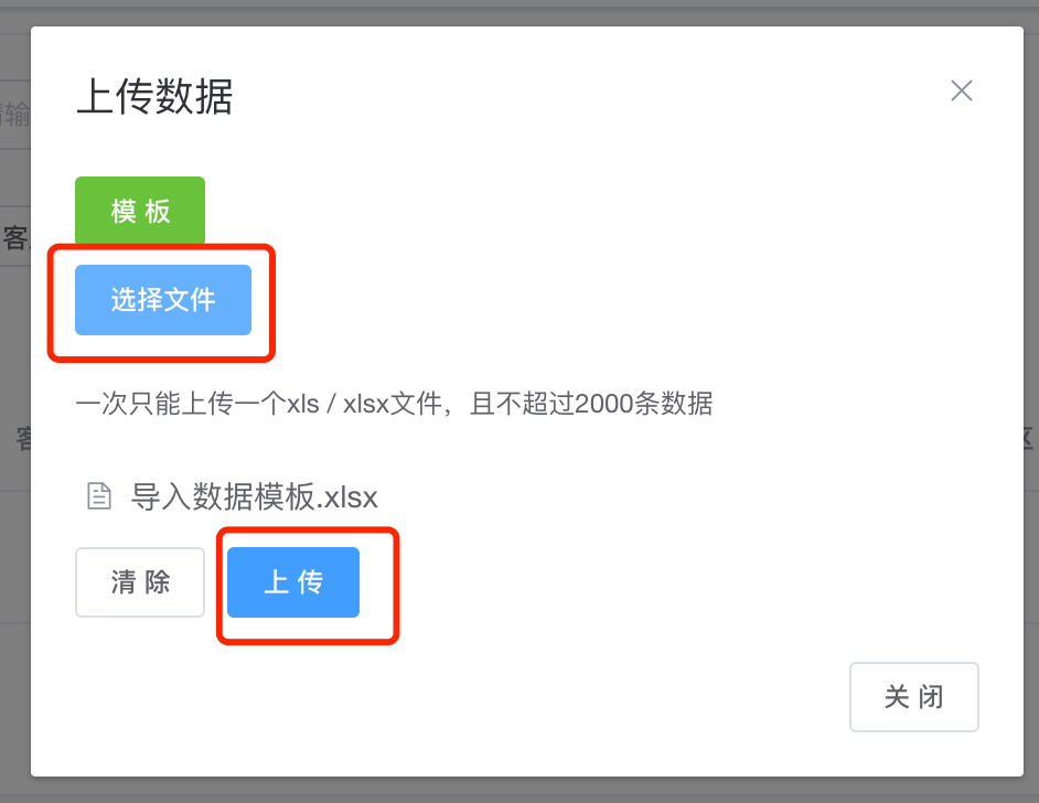第三步:导入的Excel表格准备好后,点击选择文件,点击上传按钮