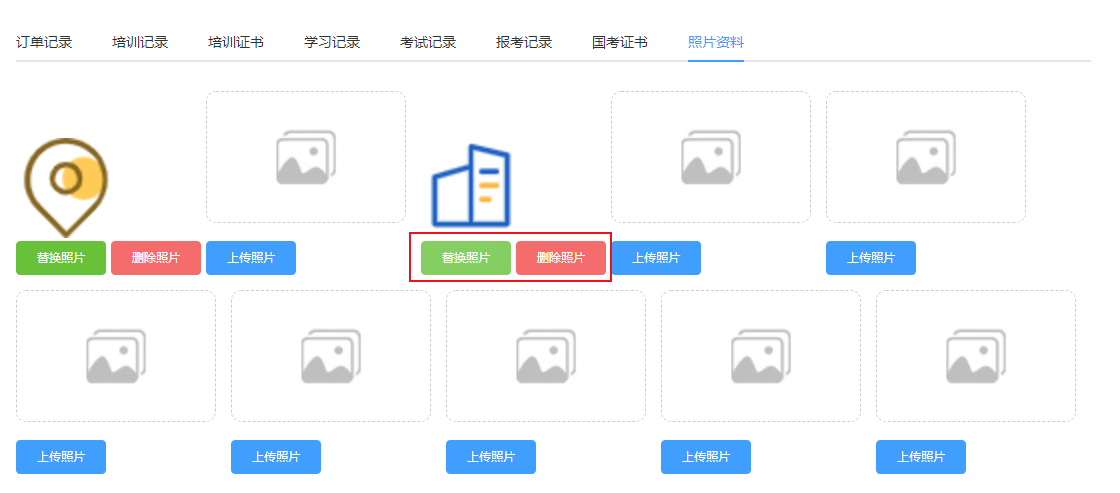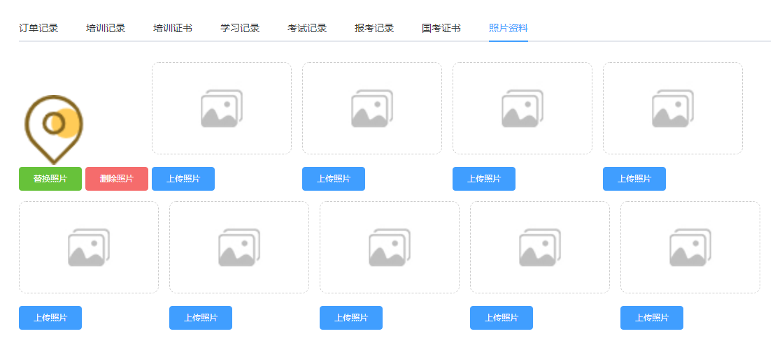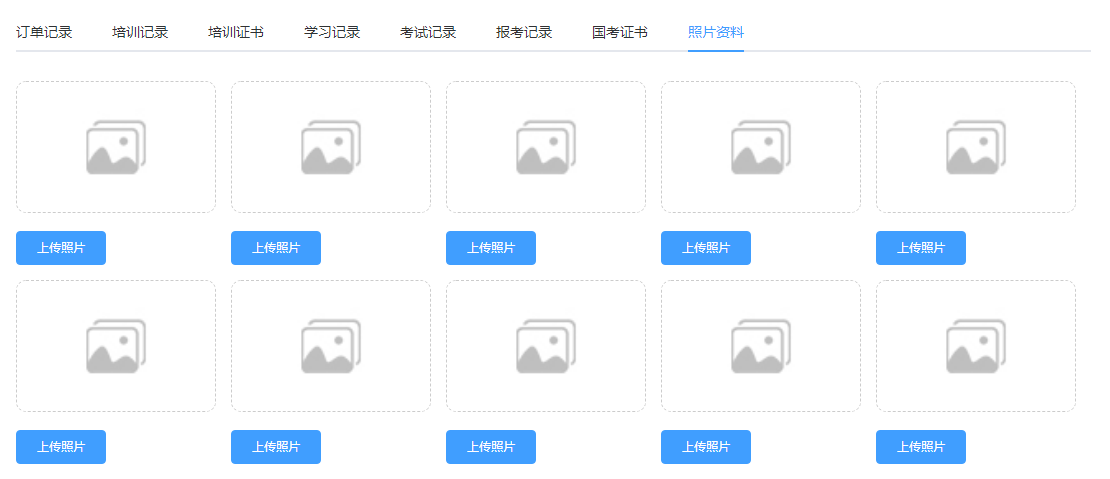 - 照片资料:主要用于上传客户的身份证正反面照片、客户其他的照片的资料,每个客户只能上传10张照片,每张照片限制100Kb大小
