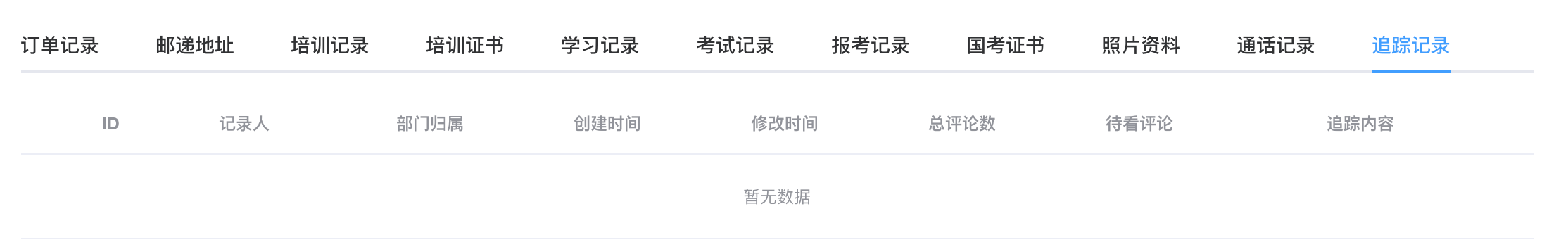 - 追踪记录:主要用于展示该客户的二次跟进开发的追踪记录