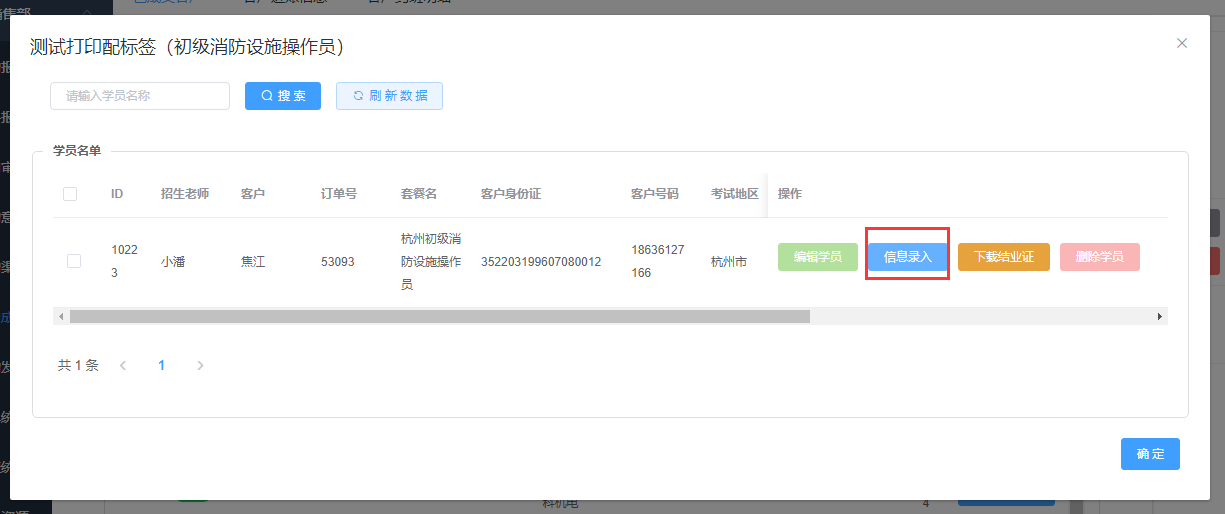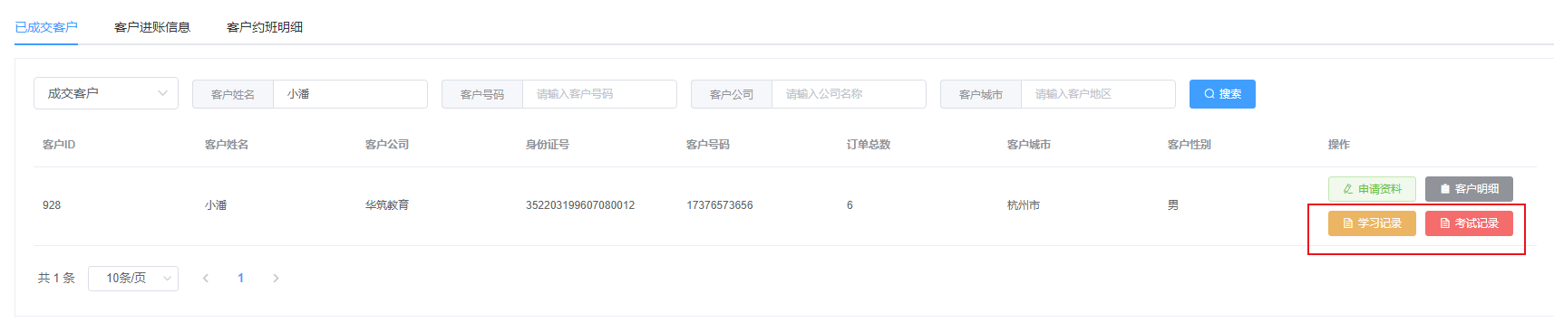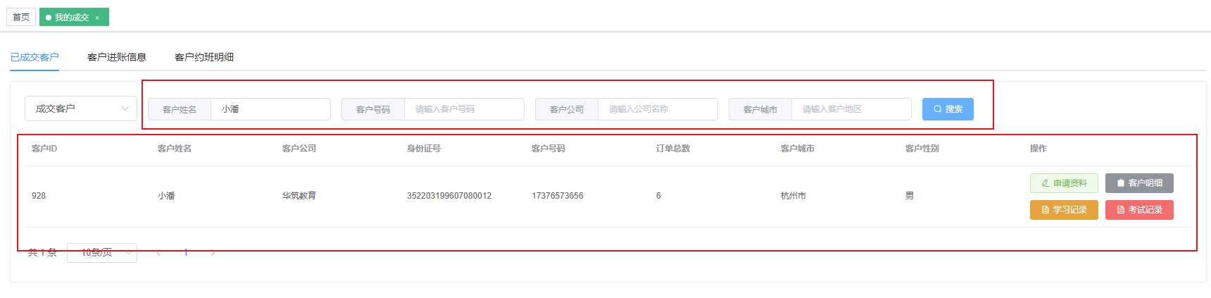 第一步:在我的成交--->已成交客户,点击搜索按钮需要报班的客户