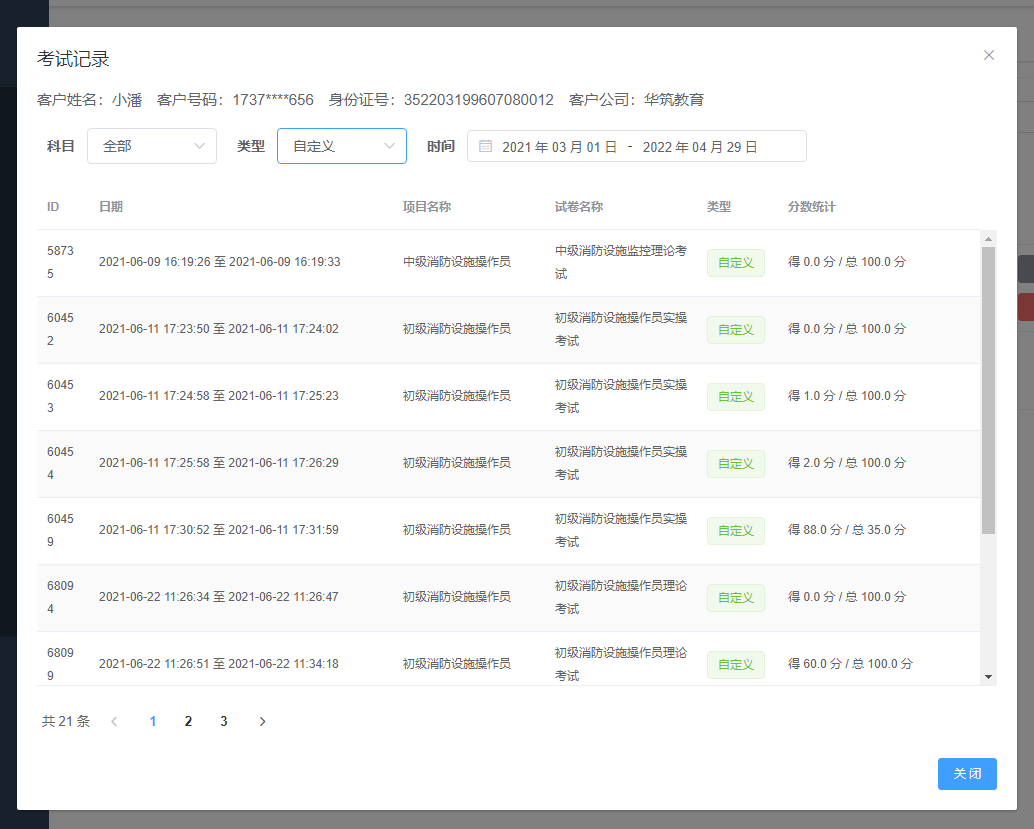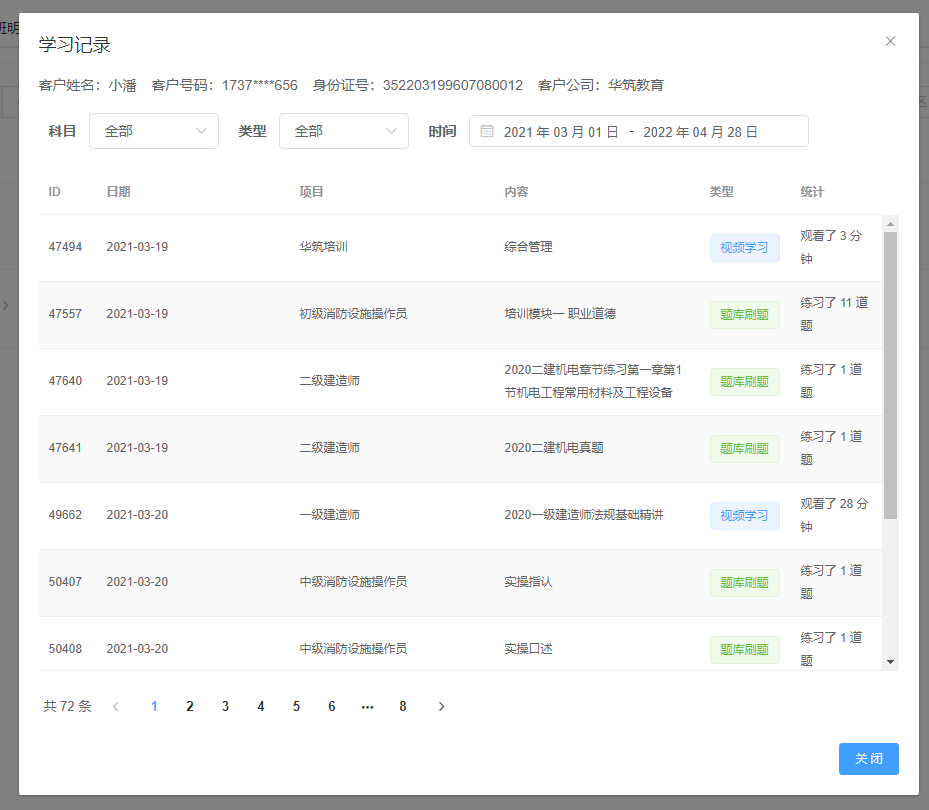 第四步:如何查看学员的考试记录、学习记录(点击对应按钮查看)
