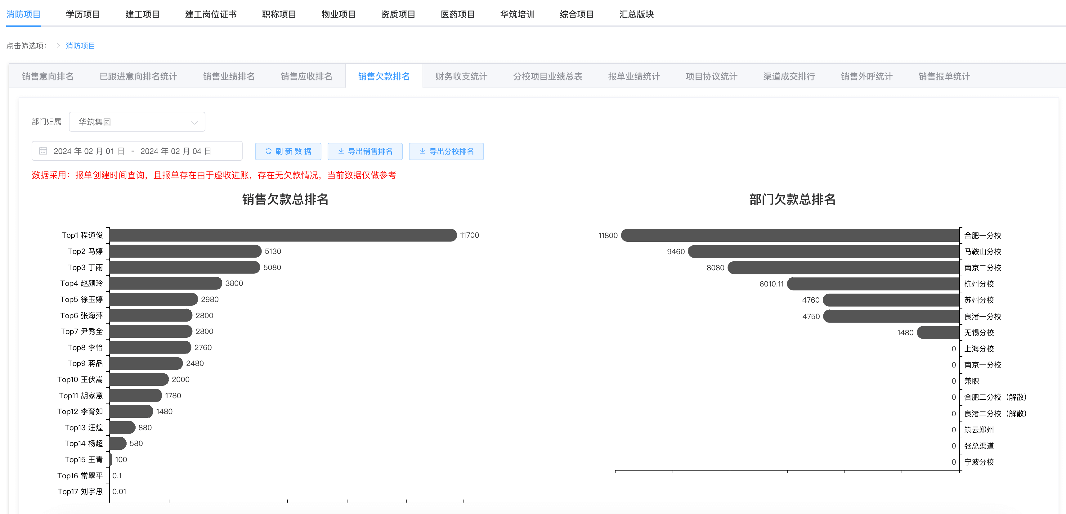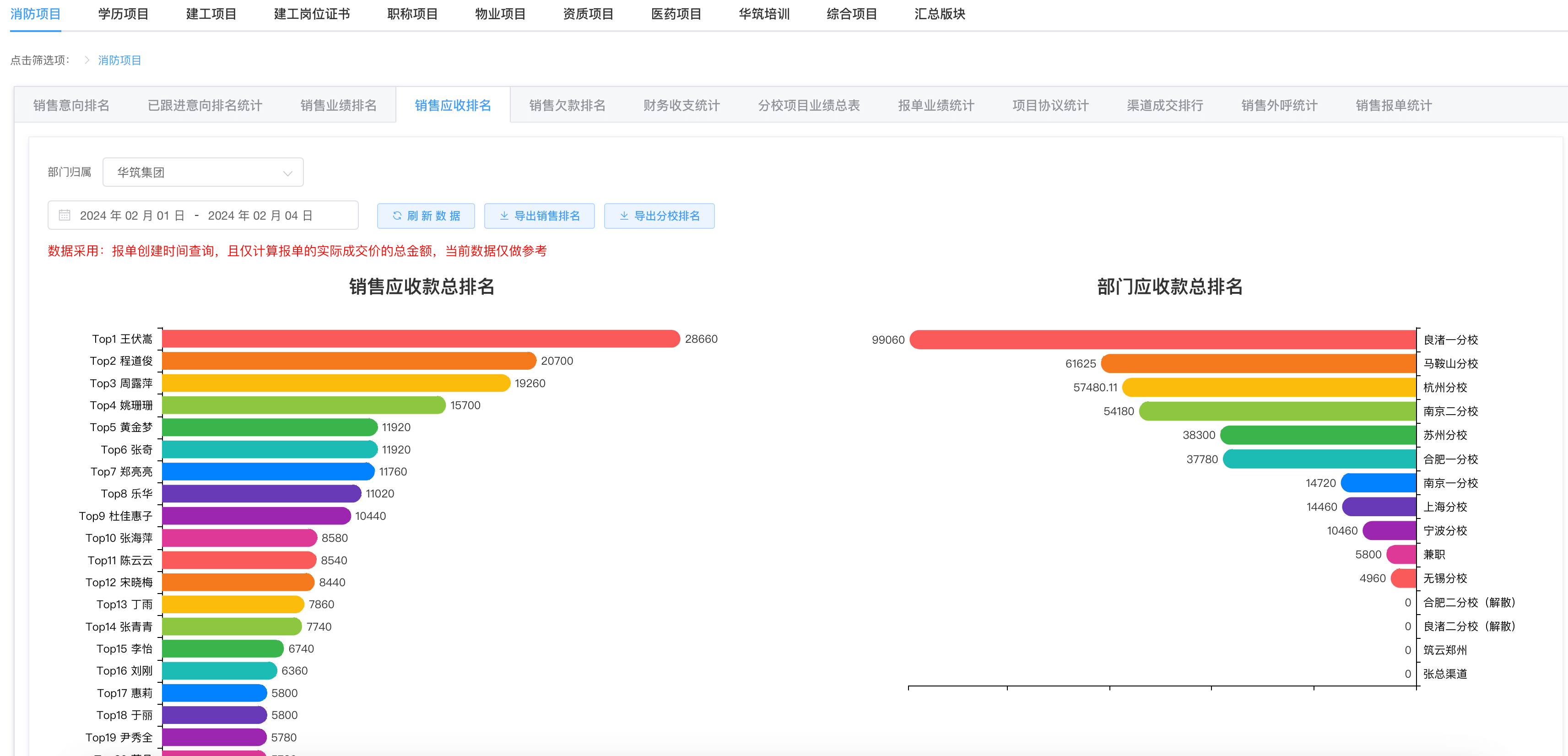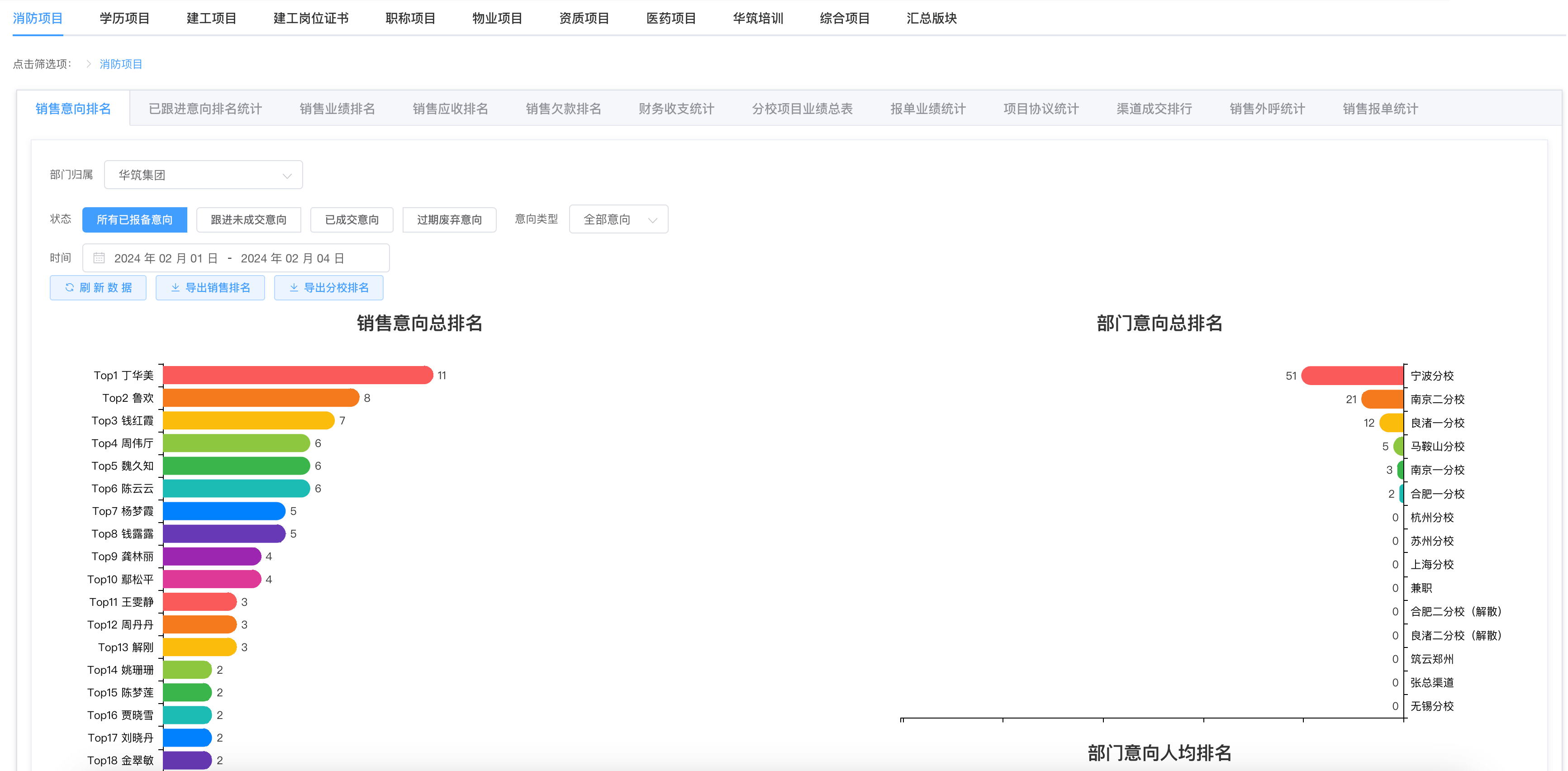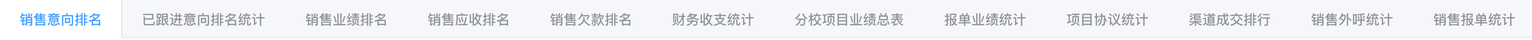 表二:已跟进意向排名统计(已跟进意向排名统计,展示所属分校、部门下的意向个数、对应时间内容的跟进意向数)