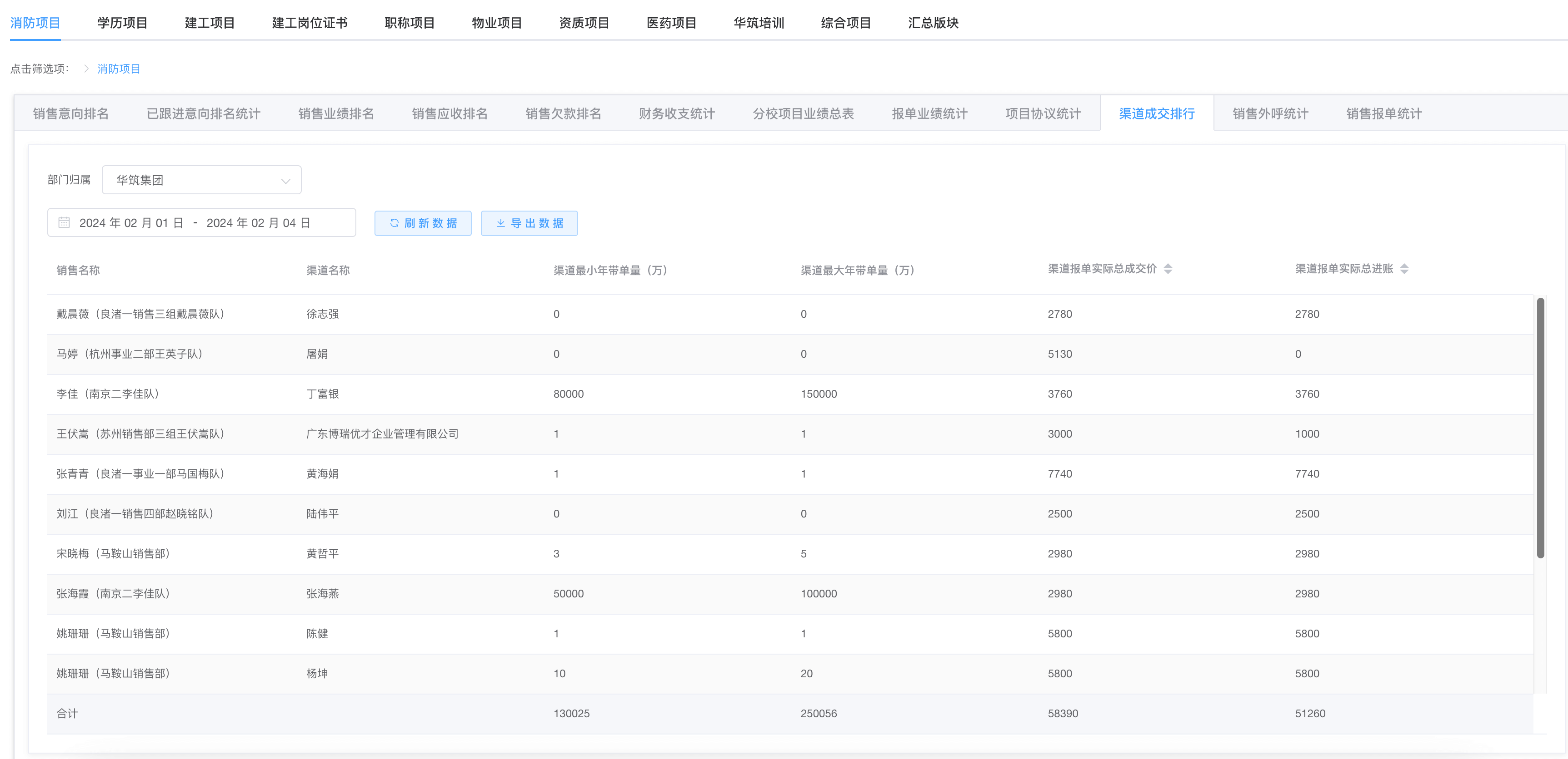 表十:渠道成交排行(渠道数据统计,渠道报单成交额排名表中,能清晰的反应,相关渠道的报单成交总金额、报单已进账总金额)