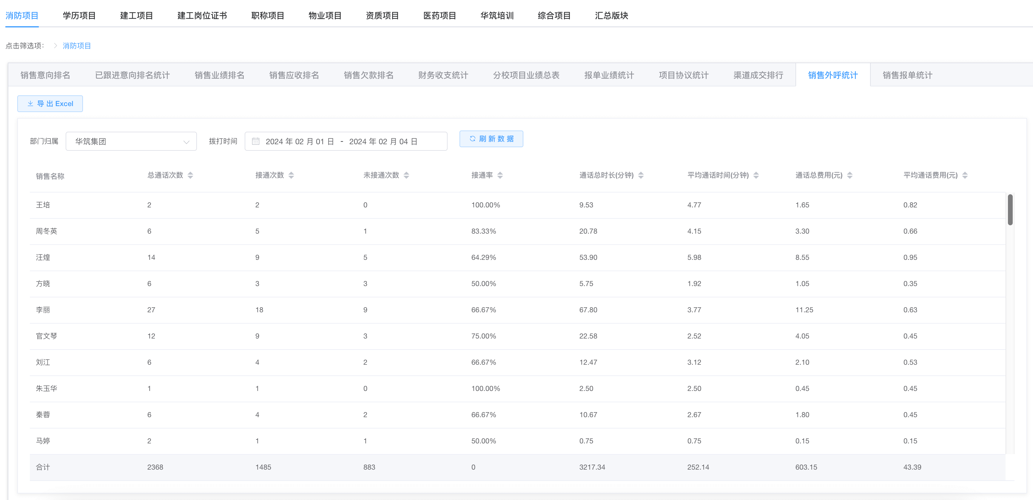 表十一:销售外呼统计(外呼数据统计,统计所属分校、部门的外呼情况)