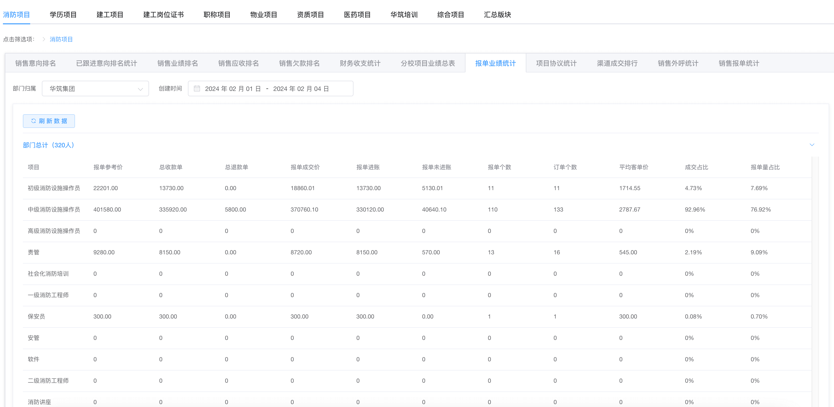 表八:报单业绩统计(报单业绩统计,按报单情况统计,报单个数、总应收金额等相关数据)