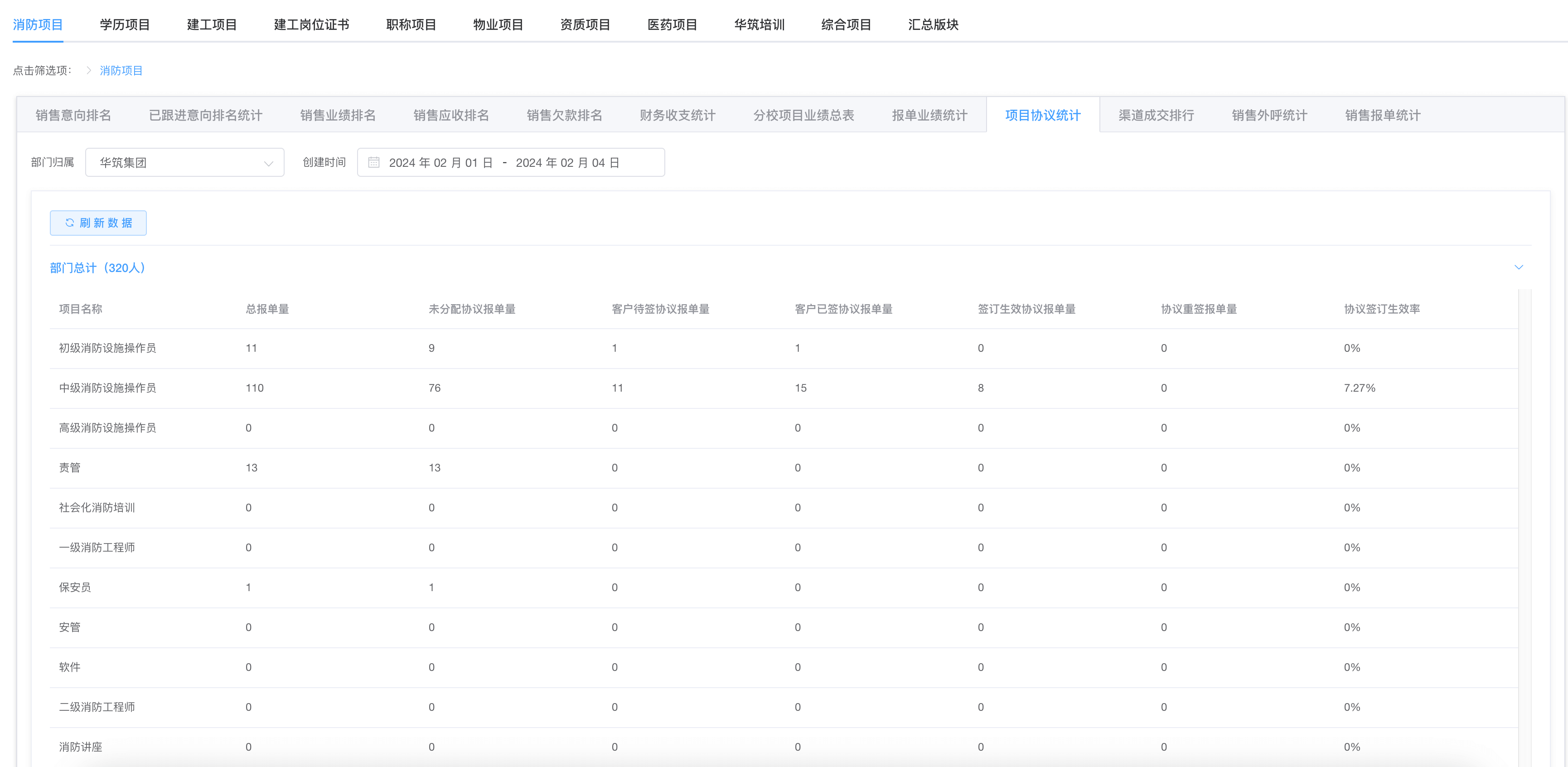 表九:项目协议统计(项目协议统计,便于部门各种状态的协议情况)