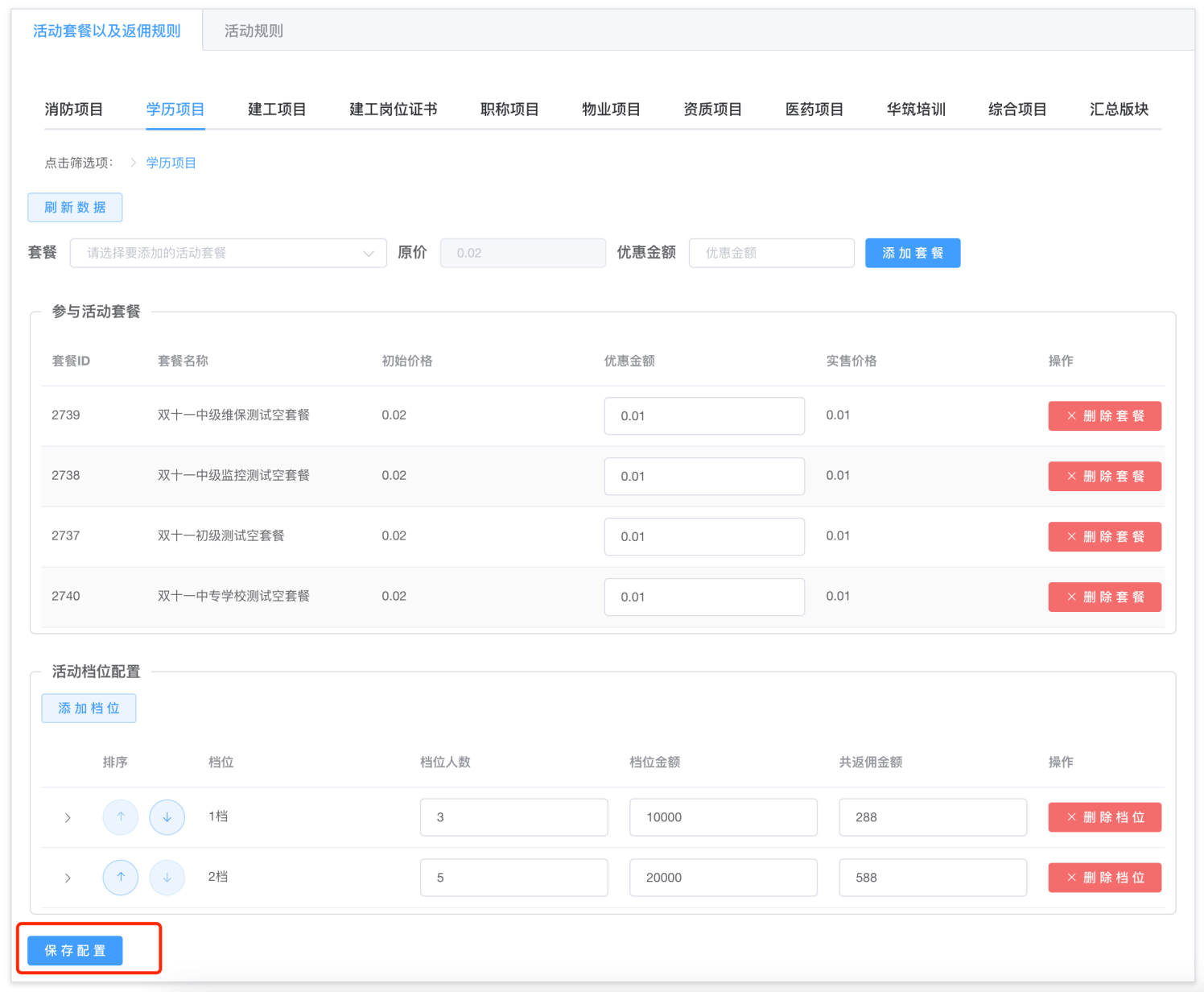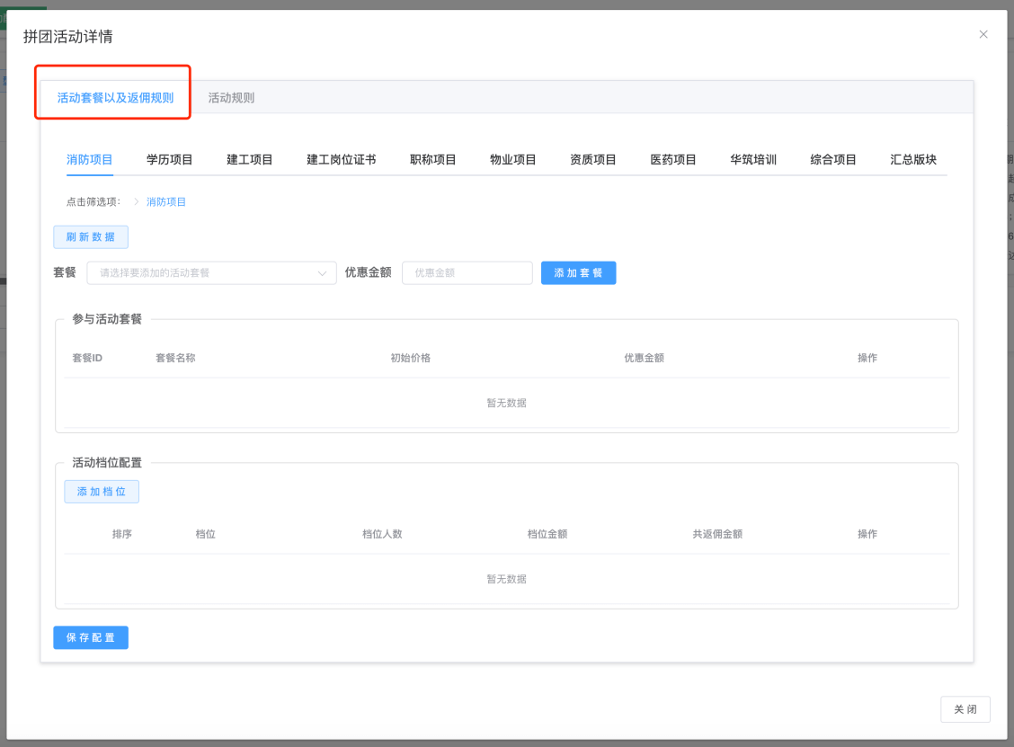 (1)配置活动套餐