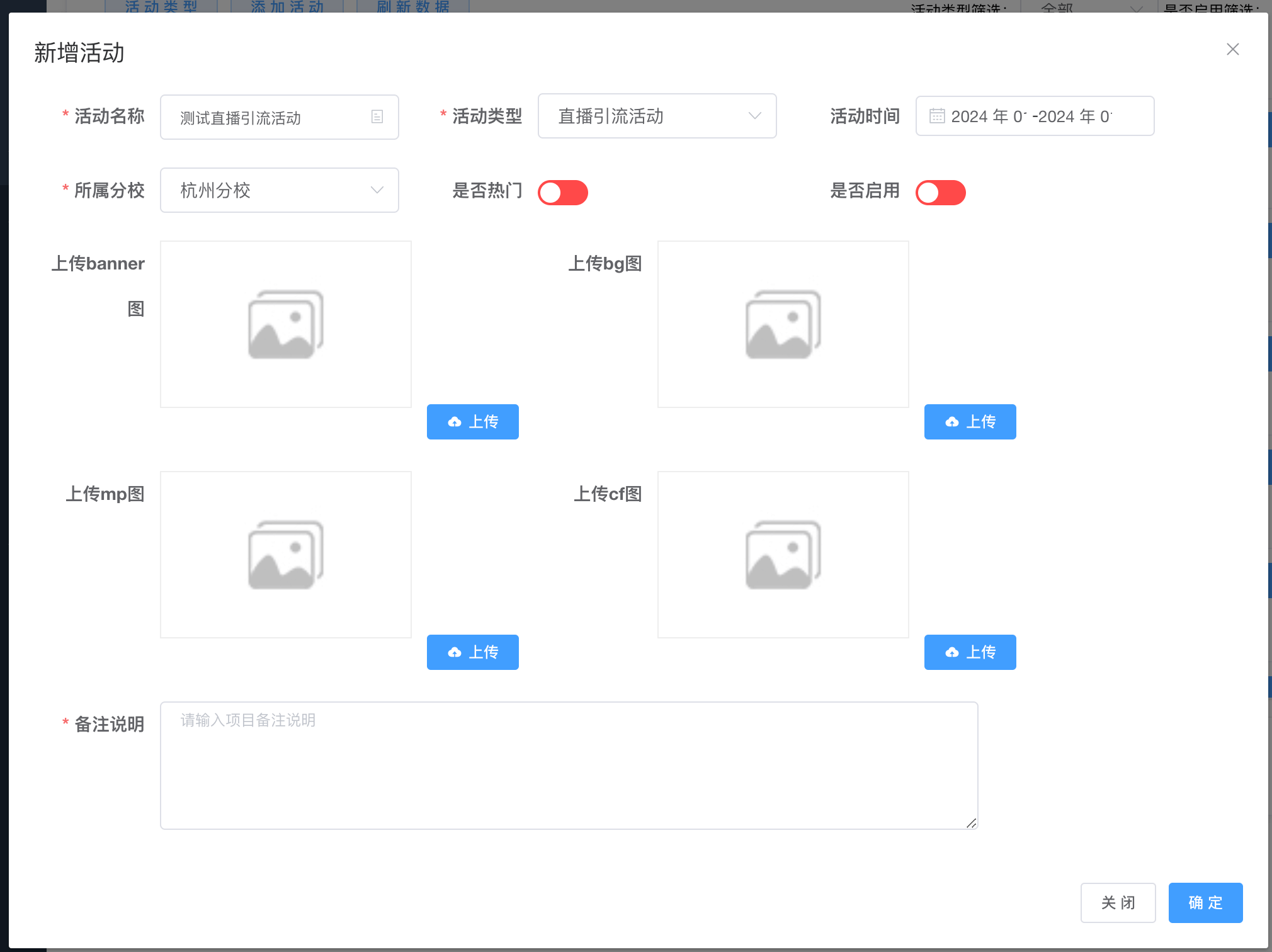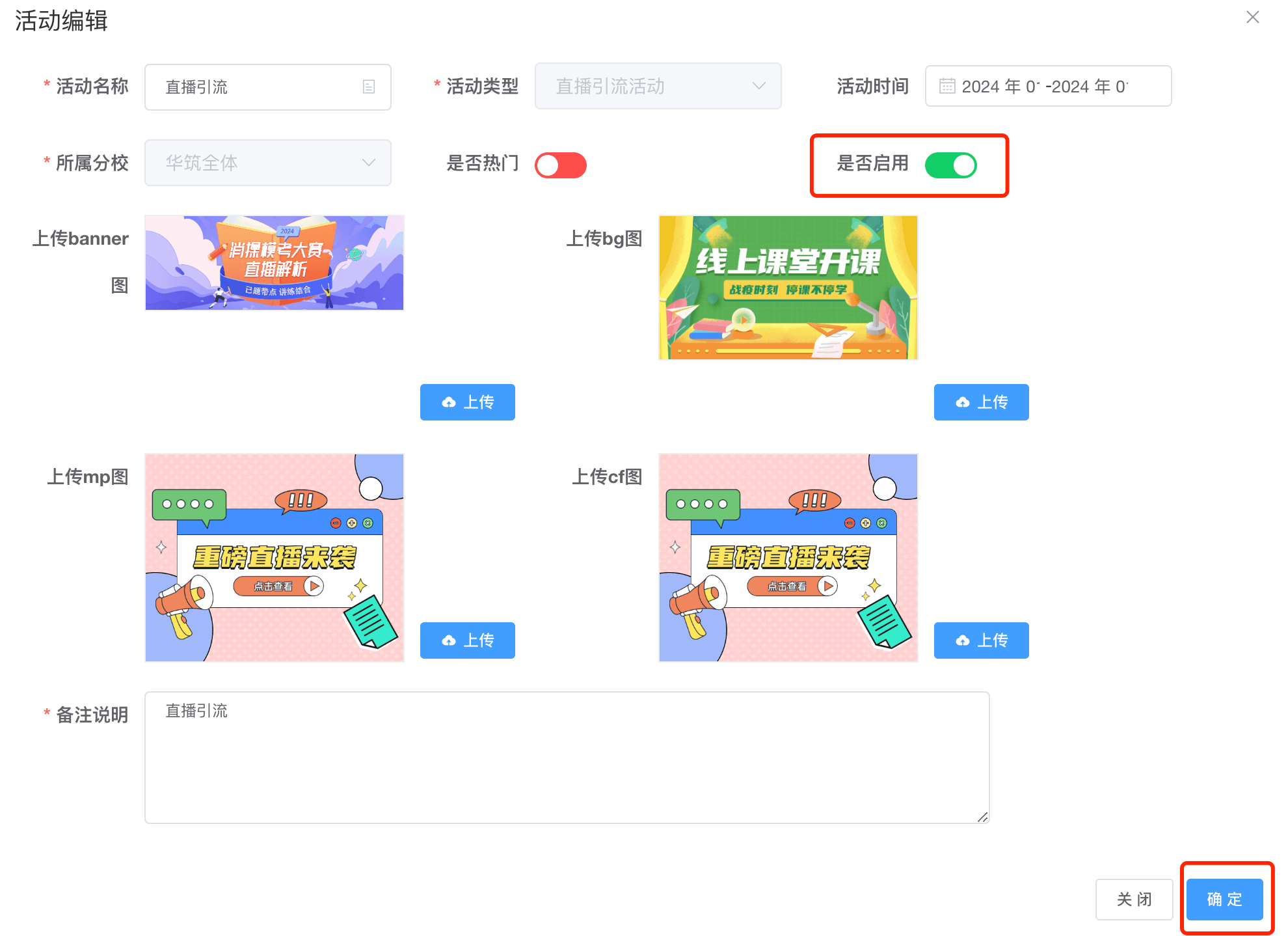 由于目前活动单一,所以活动图片是固定的,之后会迭代图片上传功能,若需更换自己校区的活动图片,自己校区的图片,自行提供【图片尺寸大小:1920*700】,准备好活动图片后,联系技术更换