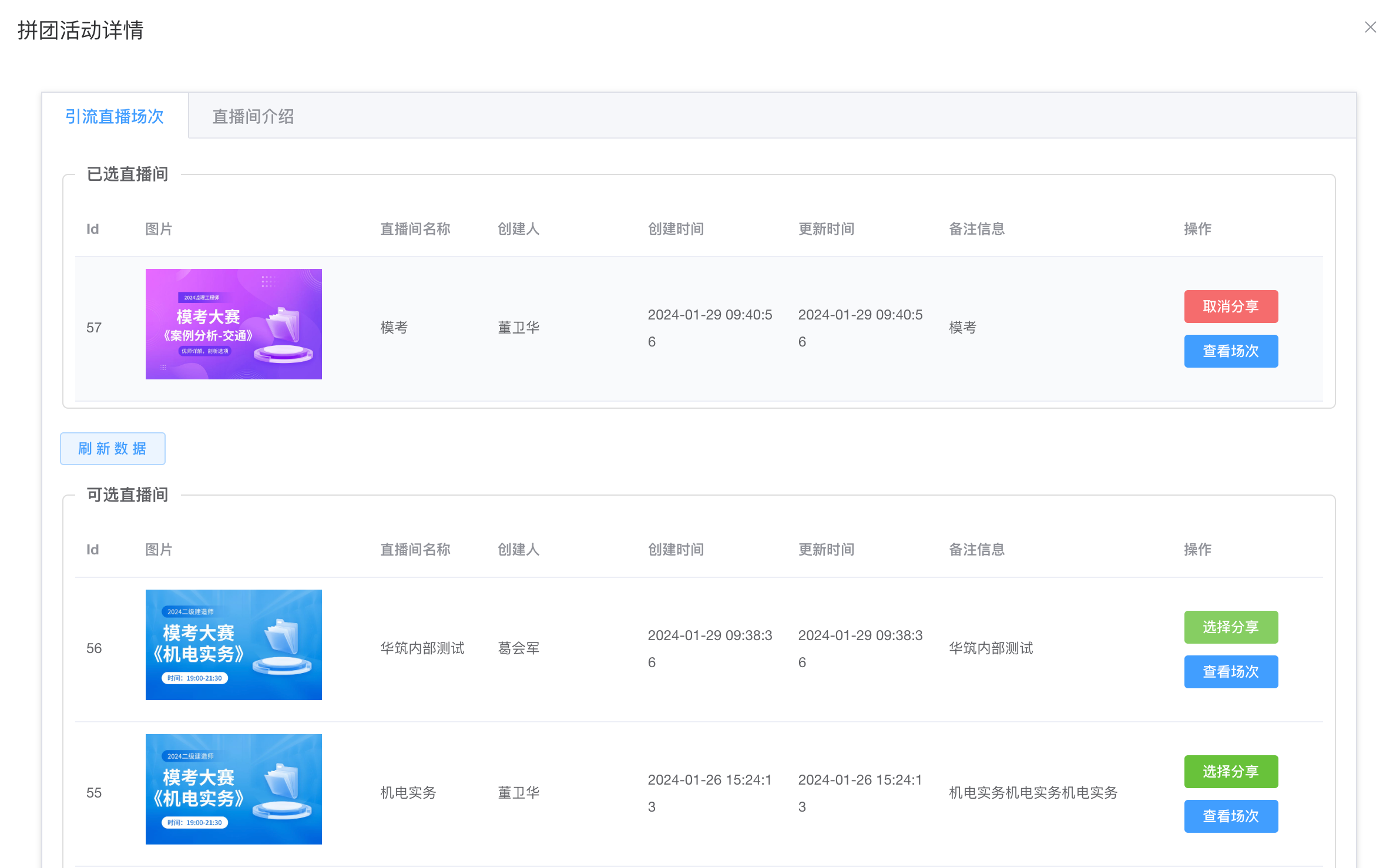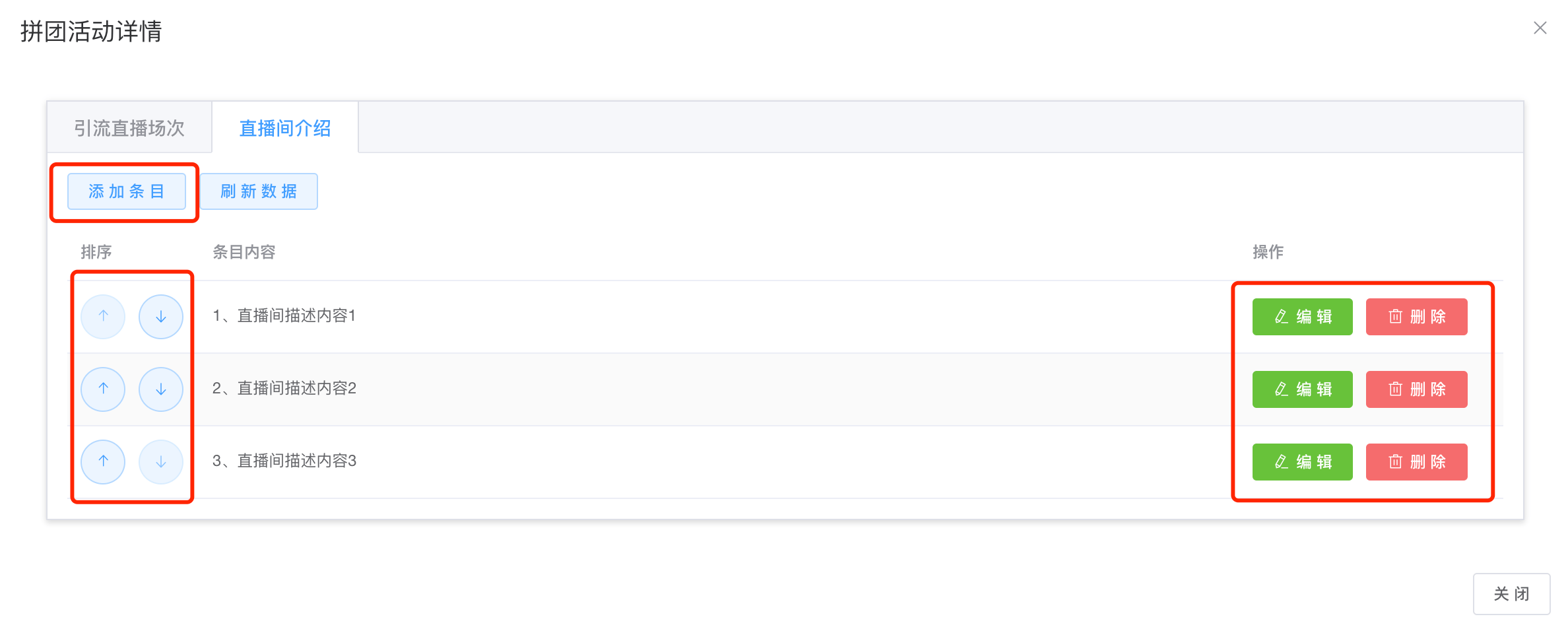 第四步:点击配置按钮,直播间介绍,可进行添加、排序、编辑、删除